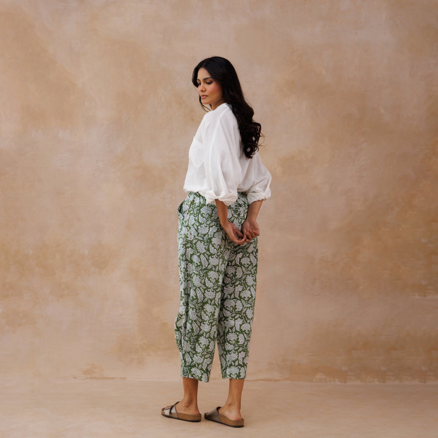 Crafted from genuine hand block-printed cotton, they feature delicate pleat detailing on the leg and a soft, elasticated waistband for a no-fuss, ultra-comfy fit.