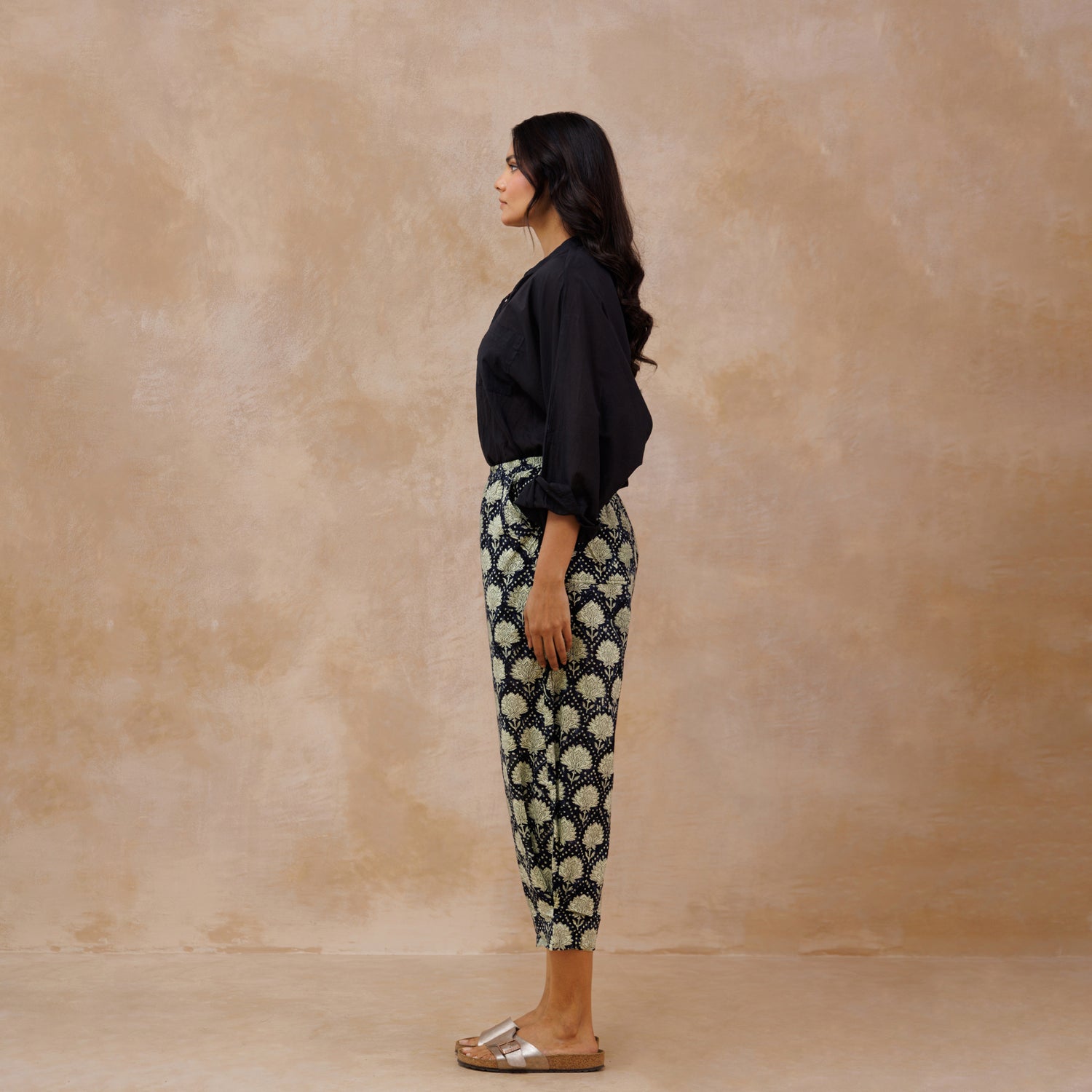 Crafted from genuine hand block-printed cotton, they feature delicate pleat detailing on the leg and a soft, elasticated waistband for a no-fuss, ultra-comfy fit.